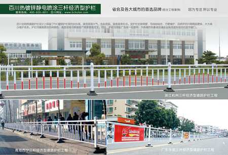 百川经济型护栏可随意喷涂各种颜色,高度、规格可根据客户需要随意改变。 百川护栏全系皆可搭配广告版一起使用,为各城市形象或交通安全秩序提供很好的宣传窗口。 百川护栏规格齐全、品种多,可任意选择高度、色彩;同时,百川不断研发新的产品,推陈出新,公司提供成百上千种护栏供您选择,或根据客户要求随意设计各种款式护栏,竭诚为交管部门提供护栏解决方案。